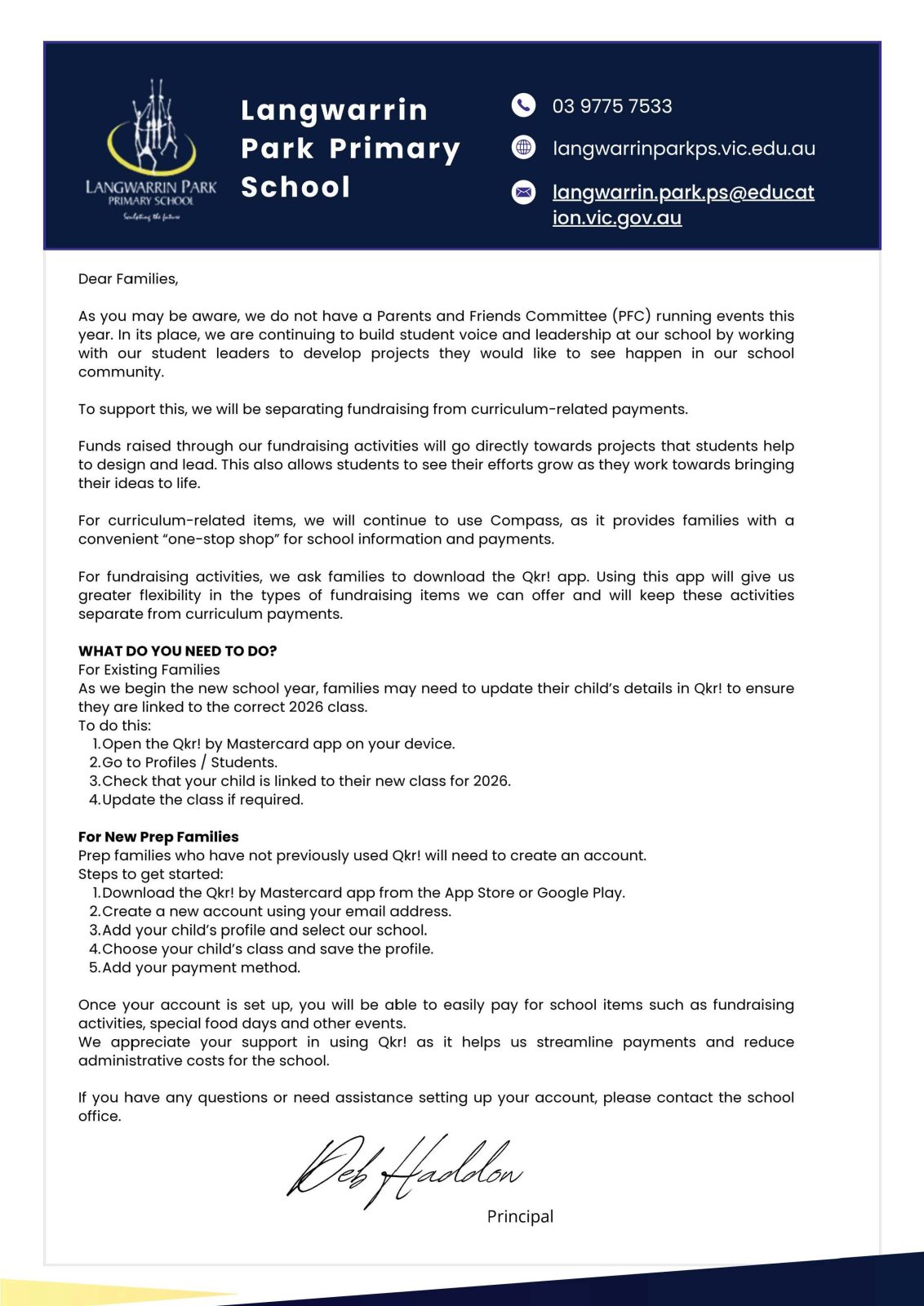 If you have any suggestions or comments please contact Jo Smith/ Assistant Principal – Wellbeing on 9775 7533 or at langwarrin.park.ps@education.vic.gov.au